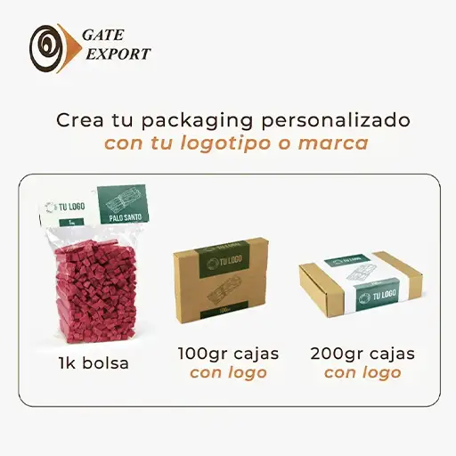 El palo santo para private label permite desarrollar líneas de producto con empaque personalizado, adaptadas a la identidad de marca de cada empresa, su mercado objetivo y los requisitos de presentación final.
